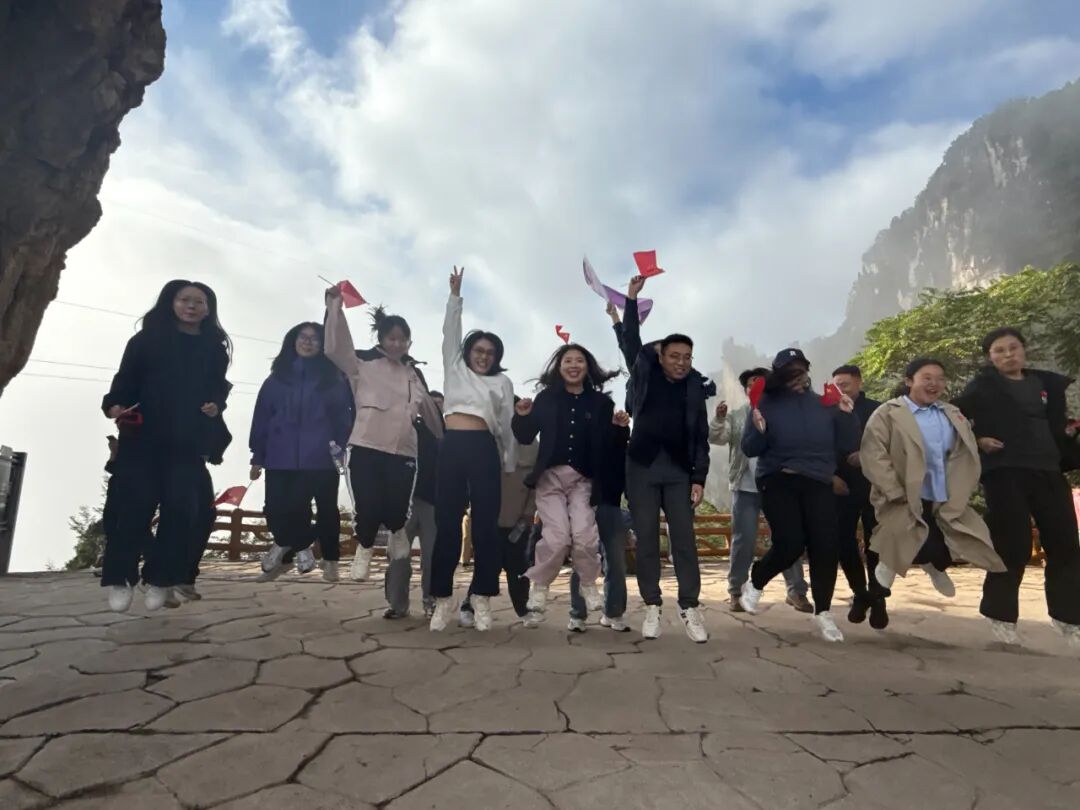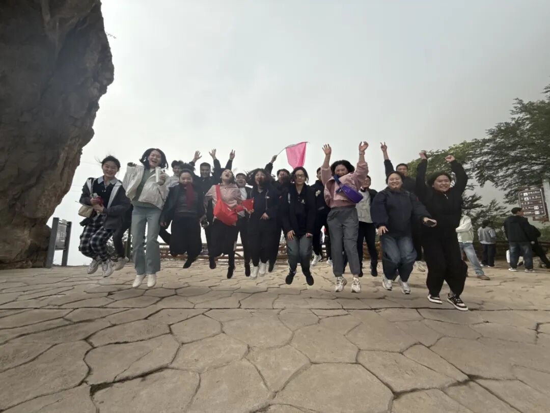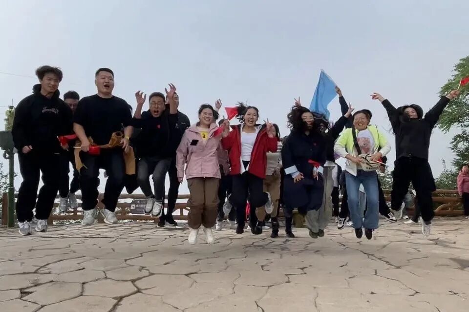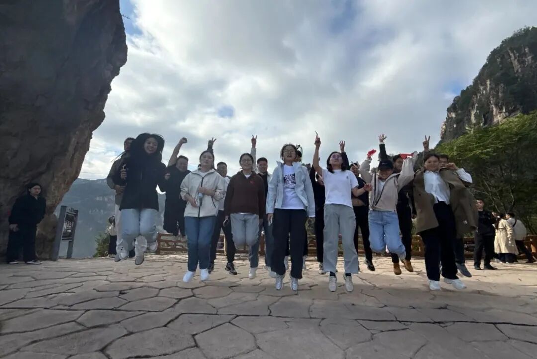 这是最具挑战性的环节——以标志性景点北天门为背景,全员跃起腾空,保证每个人的双脚都离开地面。一次次起跳,一次次调整,终于捕捉到最完美的瞬间。当队旗在太行山巅飘扬,每个人的脸上都洋溢着成就感。